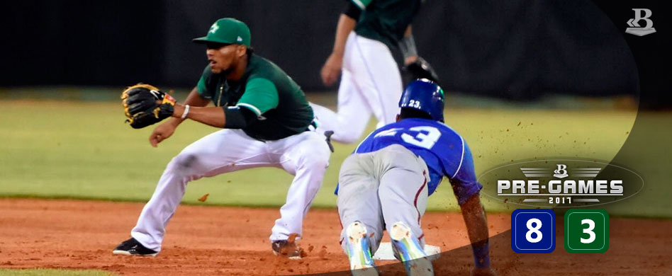 Por los Gigantes, Garabez Rosa sacó la bola del parque, Francisco Peguero pegó un triple y anotó una y Richard Ureña se fue de 3-2, con una remolcada.