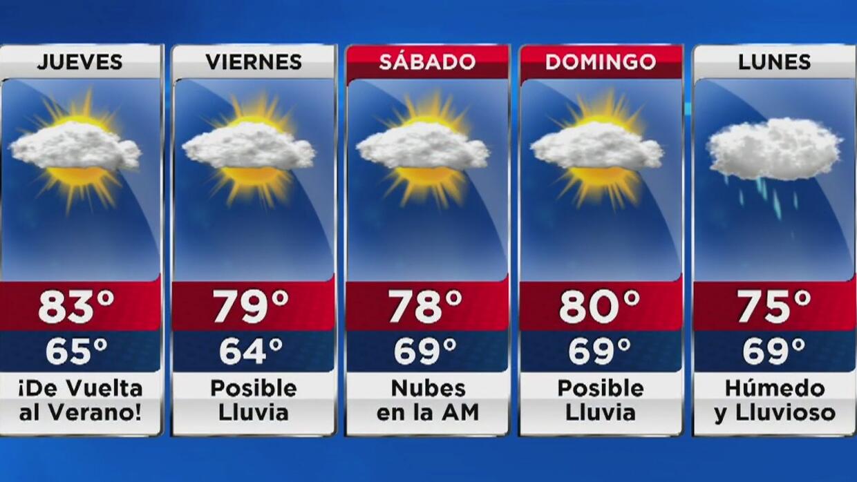 La temperatura máxima para hoy será de 83 grados, un aumento considerable a comparación de los últimos días. El cielo estará mayormente nublado, y hay probabilidad de lluvia en la noche....Seguir leyendo univision