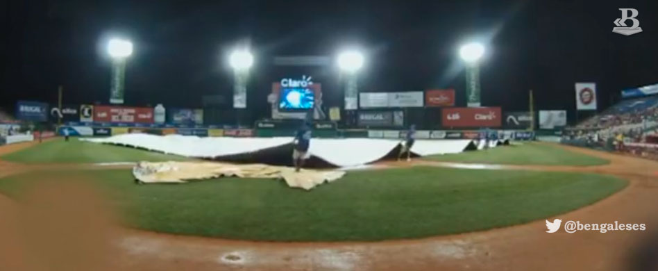 Tras una revisión del terreno por parte de los árbitros a las 8:00 de la noche, se determinó que no era viable continuar con el juego de pelota. Al momento de la paralización, por los escarlatas se mantenía en el montículo el zurdo Tyler Alexander, quien completó seis entradas de tres ponches sin bases por bolas, permitiendo solo un infield hit de Arístides Aquino en el tercer episodio. Los más destacados por los Leones a la ofensiva fueron Mayfield con doble y sencillo en tres turnos; Jonathan Davis de 3-1 con una base robada; Nate Orf de 3-1 y César Puello de 2-1 con un doble. El lanzador abridor por los Tigres, el zurdo Tommy Milone, lanzó cinco innings de cuatro hits y cuatro ponches sin otorgar boletos. En el sexto fue relevado por Leuris Gómez, quien en una entrada permitió un hit y otorgó una base por bolas. Brendan McCurry llevado al montículo en el séptimo, pero no pudo hacer el primer lanzamiento a causa de la lluvia. El partido se reanudará en una fecha que disponga la Liga de Béisbol Profesional de la República Dominicana (LIDOM) en el mismo punto en que quedó tras la suspensión....seguir leyendo .bengaleses.