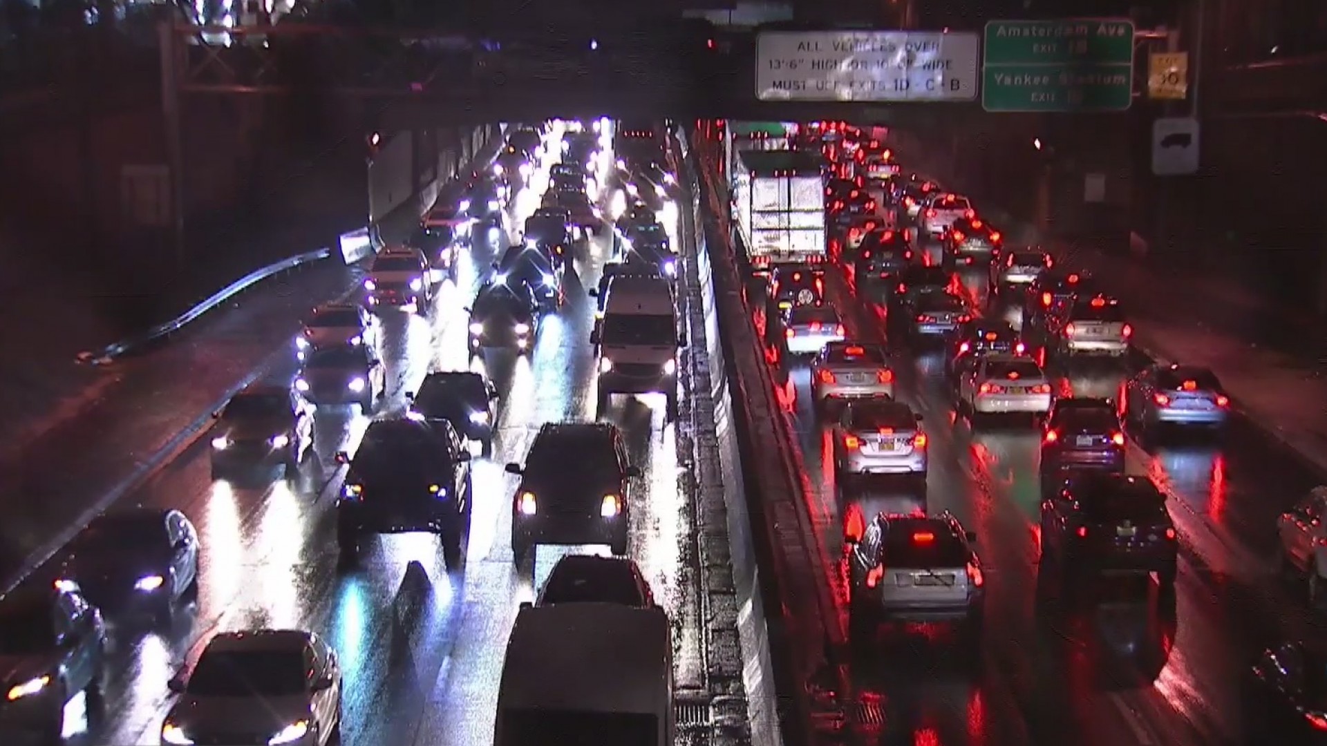 Las fuertes lluvias que azotan a Nueva York generan congestión vial en varias calles de la ciudad