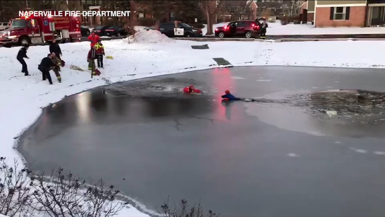 NAPERVILLE, Illinois - Los bomberos de Naperville rescataron a un niño de 11 años que cayó sobre el hielo en un estanque de retención.