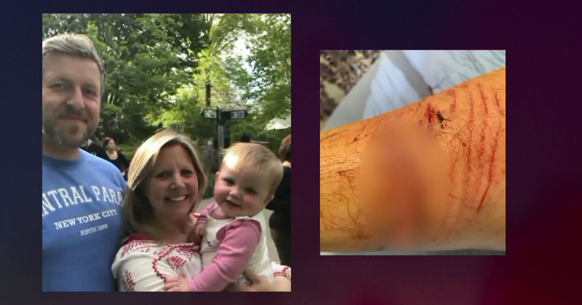 Chris y Erica Chodkowski caminaban por el parque. Con su hija Lexie de 9 meses y su labradoodle de 2 años , acababan de desayunar en el cercano Boathouse y se sentaron en un banco. Eran las 8:30 de la mañana del miércoles."No lo escuchamos ladrar, no sabíamos que otro perro estaba cerca de nosotros", le dice Erica a PIX11.