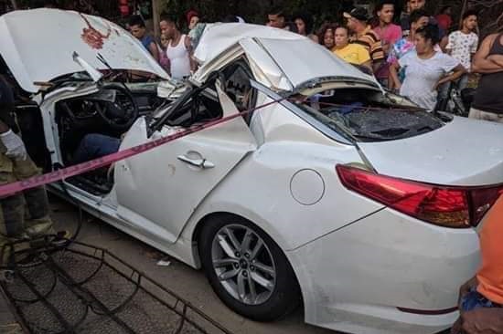LA VEGA.- Un médico nativo de Jarabacoa y su esposa fallecieron tras caer un árbol encima de un vehículo en que se desplazaban por la avenida Duarte. El doctor Iván de Jesús Minaya Tavárez, de 32 años, junto a su esposa y otra acompañante, se desplazaban por la Autopista Duarte y en la zona de “Guaco”, provincia la Vega, cuando sorpresivamente el árbol les cayó encima.,...seguir leyendo almomento