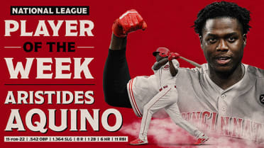 WASHINGTON – Con un bambinazo de dos carreras en el octavo inning, el novato dominicano Arístides Aquino volvió a hacer historia durante la derrota de los Rojos 7-6 ante los Nacionales el lunes. Fue su octavo jonrón en 12 juegos de por vida, un nuevo récord en Grandes Ligas. En 11 juegos desde que fue subido desde Triple-A Louisville el 1ro de agosto, Aquino batea .429 (de 35-15) con 16 carreras remolcadas. Eso significa que sus ocho vuelacercas conforman el 53.3% de todos sus hits....seguir leyendo .mlb.com/