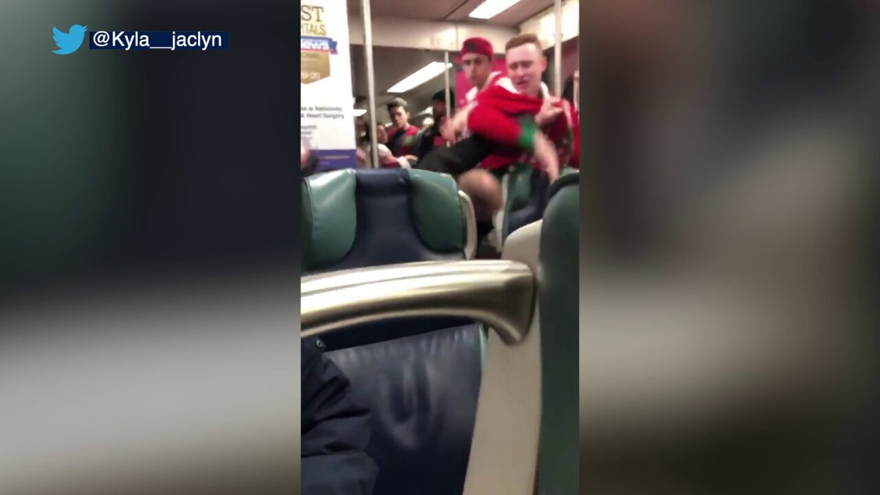 El video de las redes sociales de la escena mostró el altercado, donde numerosas personas en el tren aparentemente intentaron someter al presunto atacante.